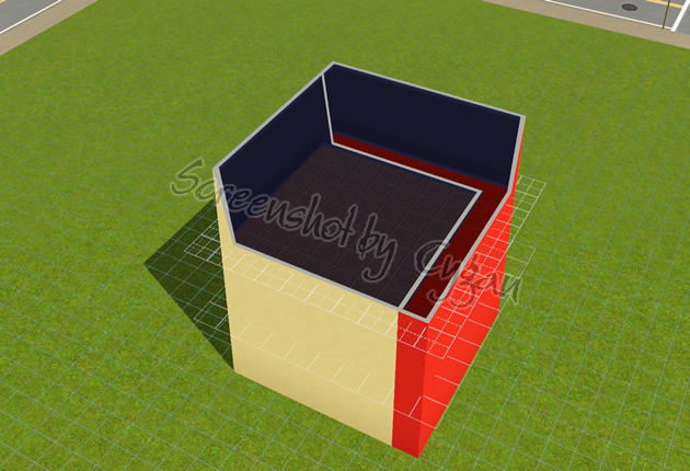 5. Hier habe ich mal eine Seitenansicht, damit ihr in den nächsten Schritten seht, was ich da grad genau mache. Der Rote Bereich wird später angehoben, der gelbe Bereich wird später bewohnbar.