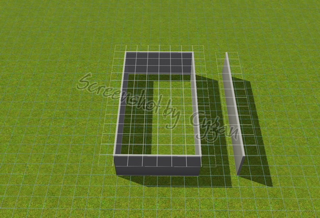 1. Wie bei Teil II planieren wir das Gelände und bauen unseren Raum sowie eine Hilfswand. Zusätzlich bauen wir für den letzten Schritt einen kleinen Hilfsraum etwas abseits.