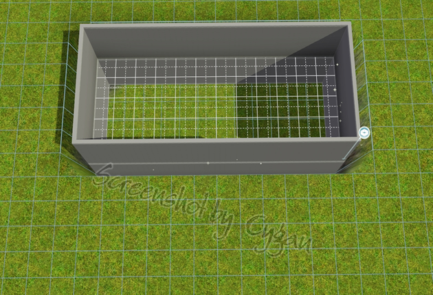 6. Nachdem wir die Räume für den Keller ausgehoben haben, errichten wir wieder einen Raum. Der Raum wird OBEN auf dem Erdboden platziert und zwar GENAU an der Erdbodenkante, die nach unten führt.