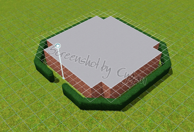 7. Mit dem "moveobjects on"-Cheat habe ich Säulen an die Eckpunkte gesetzt. schwebende Hecken sind selbst für Sims etwas zu kurios. Man hier natürlich variieren und so zum Beispiel einen Schicken Eingangsbereich zwischen zwei Wänden einrichten.